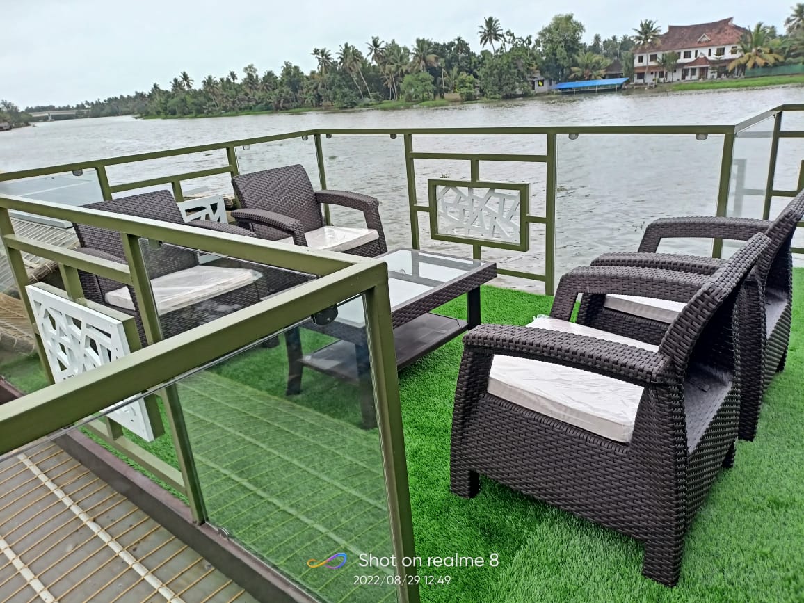 Each room comes fully air-conditioned with attached bathrooms, modern fittings, and cozy interiors. The living and dining spaces are designed to give you uninterrupted views of Alleppey’s magnificent backwaters, making your cruise even more enjoyable.